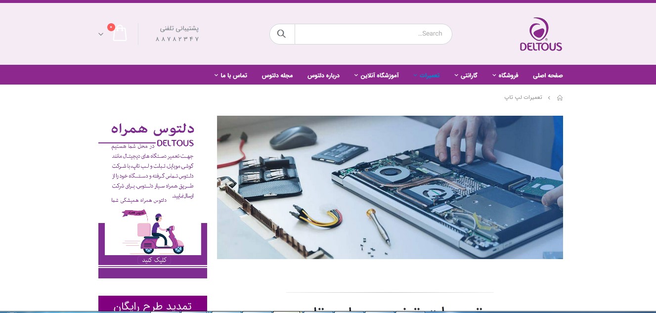 تعمیر لپ تاپ یکی از خدمات دلتوس است. متخصصان دلتوس تمامی اقدامات لازم برای تعمیر ، رفع مشکلات نرم افزاری و سخت افزاری، که برای لپ تاپ شما نیاز باشد را انجام می‌دهند. از آن جایی که هدف ما در دلتوس آسودگی خاطر شماست در زمینه تعمیرات انواع لپ تاپ های مختلف خدماتی همچون: راه اندازی لپ تاپ، سرویس لپ تاپ، تعمیر لپ تاپ، عیب یابی لپ تاپ، تعویض قطعات لپ تاپ، تعمیر کیبورد لپ تاپ، نصب نرم افزار بر روی لپ تاپ، تعویض دوربین وب کم لپ تاپ، تعمیر و یا تعویض مادربورد لپ تاپ، تعویض صفحه نمایش لپ تاپ، تعویض LED لپ تاپ، تعویض LCD لپ تاپ، تعویض لولا لپ تاپ، تعویض فن، تعویض سوکت شارژ لپ تاپ، تعویض تاچ پد و دیگر خدماتی از این قبیل را به صورت کاملا تخصصی ارائه می نماید‌‌.همچنین لازم به ذکر است که در دلتوس هرگونه تعمیر لپ تاپ با گارانتی پس از تعمیرات انجام می شود و در صورت بروز هرگونه مشکلی در قسمت مورد تعمیر قرار گرفته، نسبت به بر طرف سازی آن اقدامات لازم صورت خواهد گرفت.